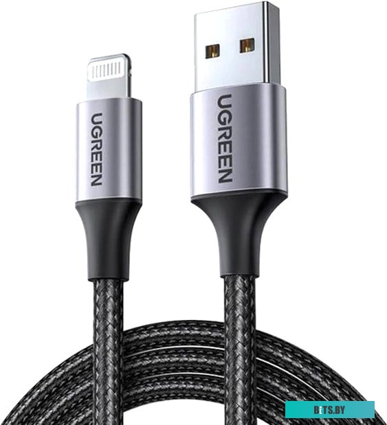Кабель Ugreen US199 60156 USB Type-A - Lightning (1 м, черный/серый)